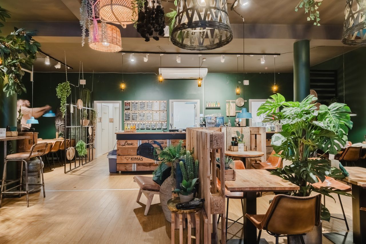 Her er plads til 60 gæster indendørs, fordelt på et hyggeligt og fleksibelt serveringsmiljø.