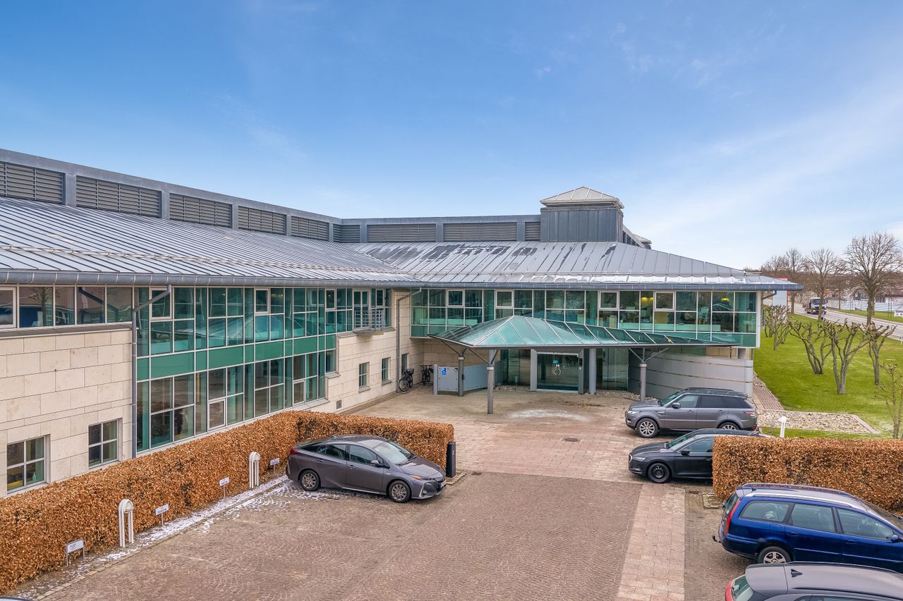 I en meget stor ejendom med fantastisk synlighed til hovedindfaldsåren til Middelfart og med kort afstand til motorvejen, er der mulighed for at leje et domicil-lejemål på op til 1.995 m2, bestående af et blandt andet et stort fællesrum med plads til 20-25 kontorpladser, og som ligeledes indeholder lejemålets eget indgangsparti, hvis man ikke ønsker at benytte ejendommens fælles indgangsparti. Derudover et stort auditorie, og en lang række kontor- og mødelokaler (i alt 25 lokaler), depotrum, the-køkkener, køkken, og omklædningsfaciliteter med to bruserum og mulighed for vaskemaskine og/eller tørretumbler.