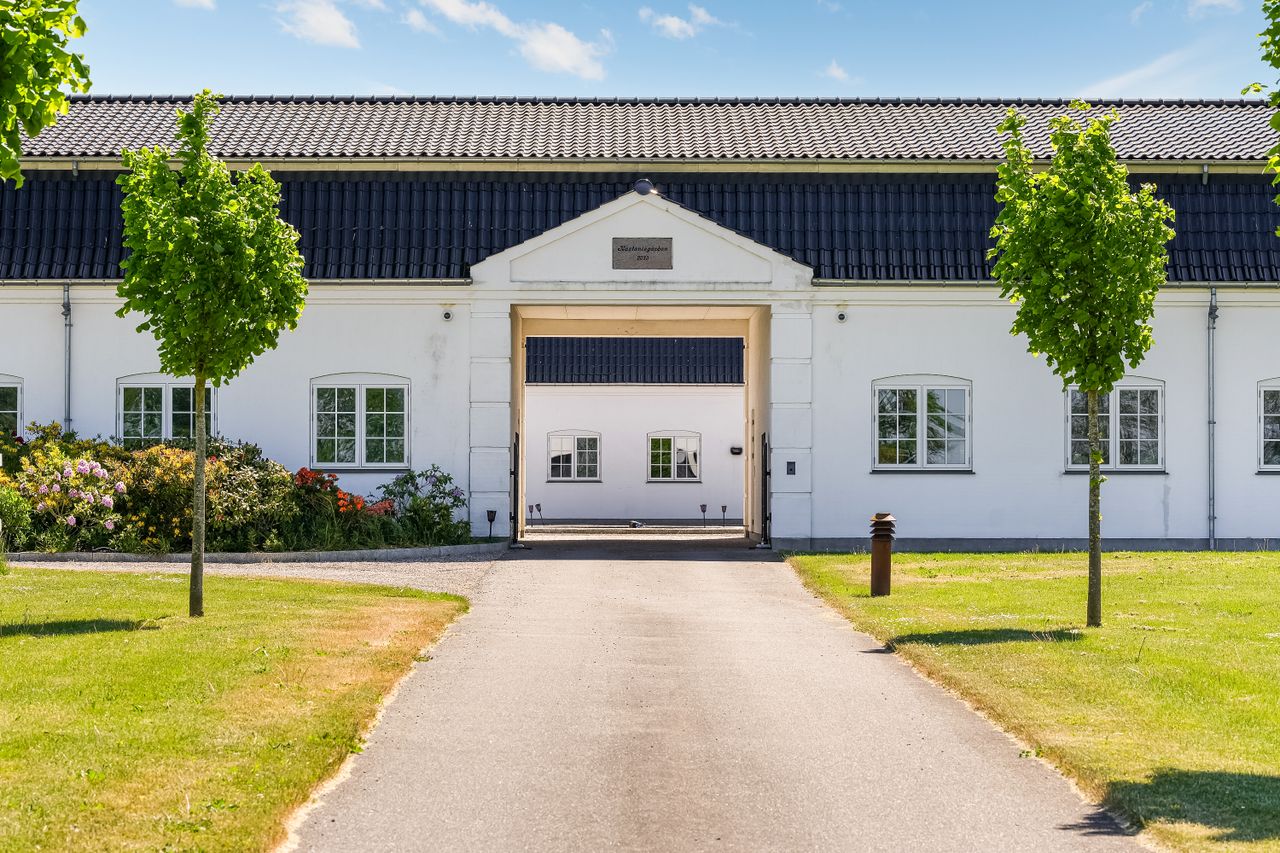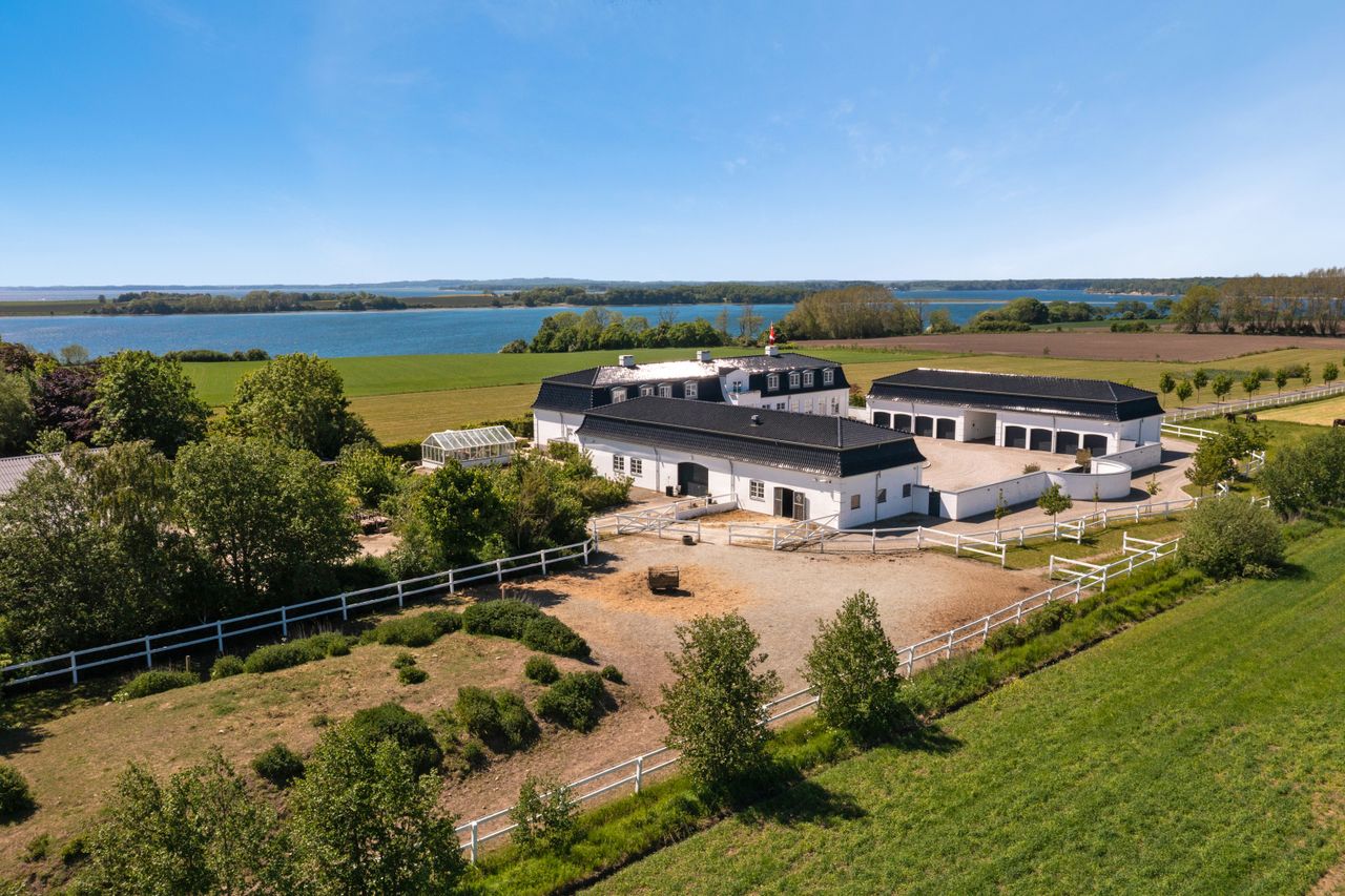 Så snart man kører gennem porten og ned ad den lange allé, er der udsyn til både den smukke ejendom, og hvælvingen, der fører dig ind på gårdspladsen, hestefolde, marker, det store græsanlæg med en lille sø, og ikke mindst den helt fantastiske havudsigt.