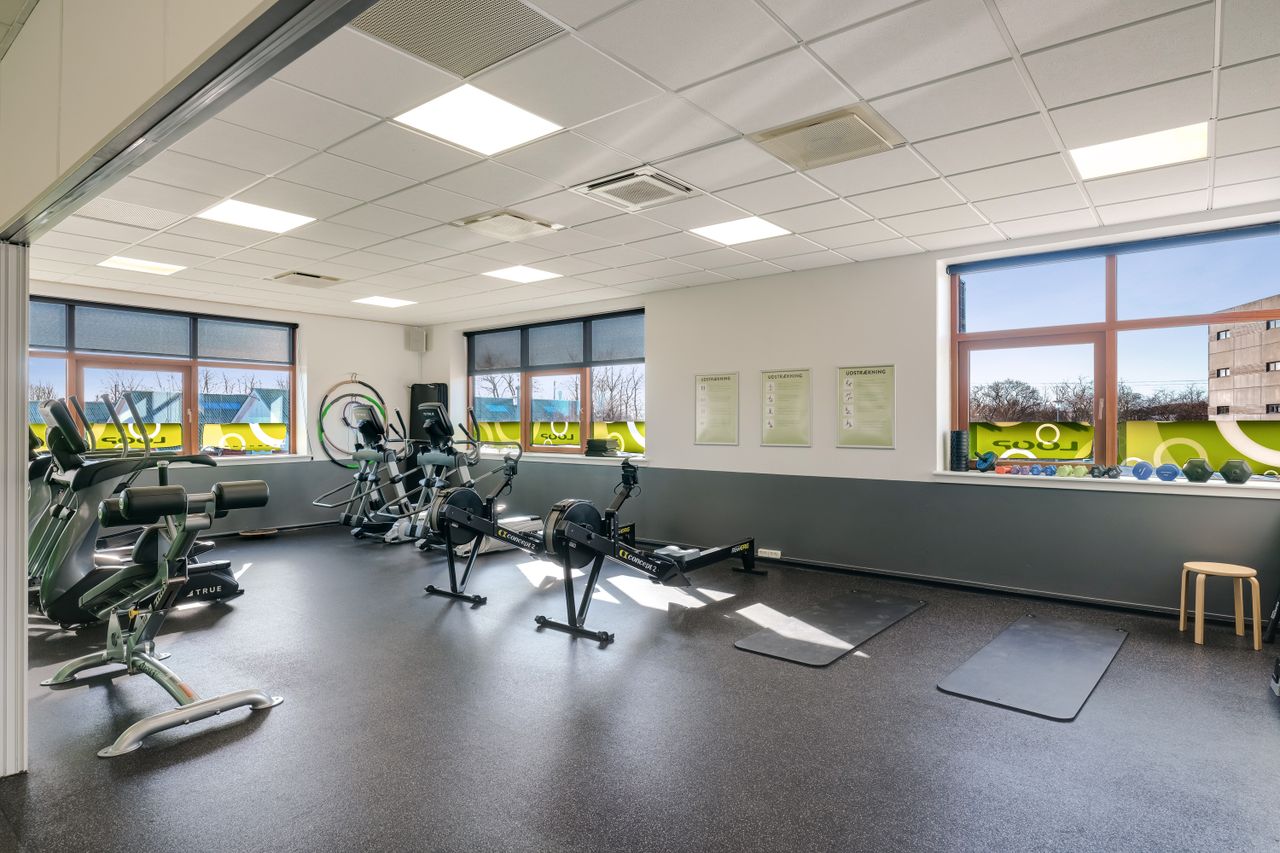 Lejemålet er indrettet med en stor træningssal, der giver rigelig plads til forskellige aktiviteter og arrangementer. Derudover en mindre træningssal, som supplerer den store træningssal perfekt ved at tilbyde et mere intimt rum til specialiserede sessioner eller mindre grupper. Der er 145 m2 omklædningsfaciliteterne i kælderen, inkluderer skabe, der kan aflåses af brugerne, badefaciliteter og toiletter, hvilket sikrer optimal bekvemmelighed for alle brugere.