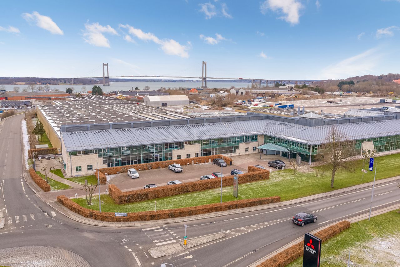 I en meget stor ejendom med fantastisk synlighed til hovedindfaldsåren til Middelfart og med kort afstand til motorvejen, er der mulighed for at leje et domicil-lejemål på op til 1.995 m2, bestående af et blandt andet et stort fællesrum med plads til 20-25 kontorpladser, og som ligeledes indeholder lejemålets eget indgangsparti, hvis man ikke ønsker at benytte ejendommens fælles indgangsparti. Derudover et stort auditorie, og en lang række kontor- og mødelokaler (i alt 25 lokaler), depotrum, the-køkkener, køkken, og omklædningsfaciliteter med to bruserum og mulighed for vaskemaskine og/eller tørretumbler.